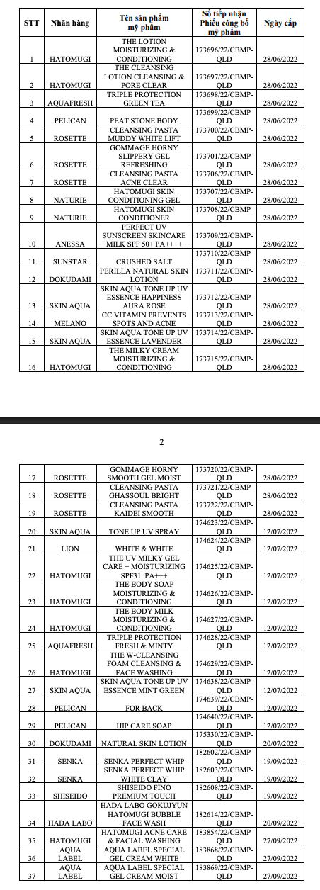 Cơ quan quản lý đã yêu cầu thu hồi, tiêu hủy 37 mỹ phẩm, trong đó có nhiều loại kem chống nắng nổi tiếng trên thị trường.