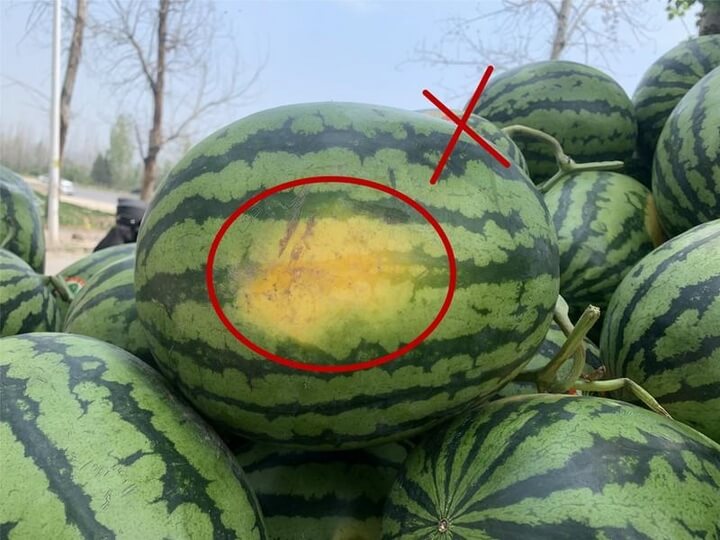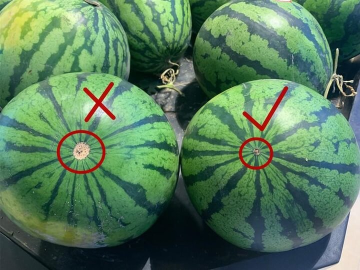 Sẽ có một vòng tròn nhỏ dưới đáy quả dưa hấu. Quả dưa có vòng tròn lớn có vị khô và hoàn toàn không có “vị dưa hấu”. Đáy quả dưa có vòng tròn nhỏ có hương vị tinh tế, đủ nước và ngọt.