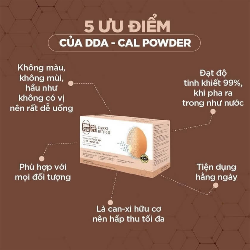 - Bổ sung Canxi hiệu quả: Canxi hữu cơ DDA có hàm lượng Canxi cao, dễ hấp thu, giúp nhanh chóng bổ sung lượng Canxi thiếu hụt cho cơ thể.