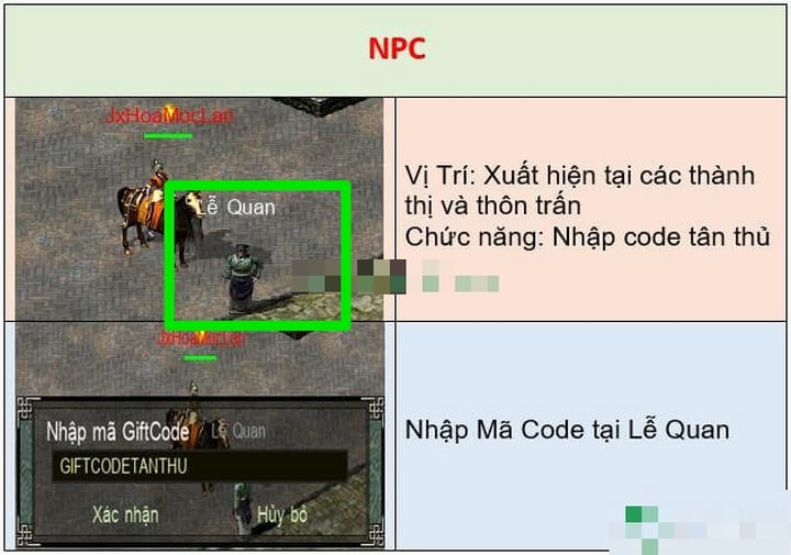 Hãy đi đến “Lễ quan” game thủ có thể tìm thấy tại tất cả các thành thị, thôn trấn …. hãy nhấp vào Lễ quan chọn Nhập mã GiftCode, sau đó bấm mã GiftCode trên để nhận Lễ bao thân thủ.
