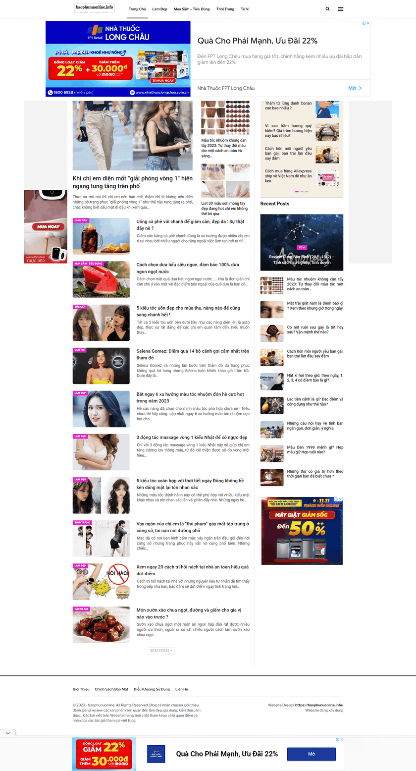 https://baophunuonline.info/ – Blog cá nhân chuyên giới thiệu, đánh giá và review các sản phẩm liên quan đến làm đẹp, gia dụng, kiến thức, ẩm thực…