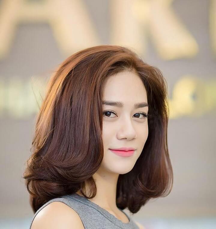 Với kiểu cắt này bạn nên để tóc ngang vai với phần tóc từ thân đến đuôi tóc được tạo kiểu bồng, ôm sát khuôn mặt giúp làm nhỏ lại phần xương quai hàm.