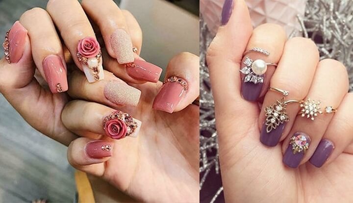 Móng tay đính đá có nhiều thiết kế và màu sắc đa dạng. Những hạt đá đính trên móng tay tạo điểm nhấn thêm thu hút lôi cuốn mọi ánh nhìn. Với kiểu móng tay đính đá đem lại cho bạn vẻ ngoài đầy sang trọng và quý phái và vô cùng tinh tế.