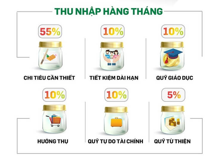 Mỗi chiếc lọ sẽ phục vụ cho một nhu cầu nhất định trong cuộc sống. Hãy nhớ, bắt buộc phải chia tiền thành 6 phần theo tỷ lệ dưới đây:
