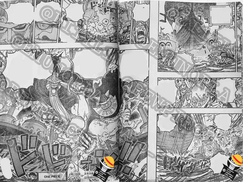Trong trang đôi cuối cùng của chương, con tàu “Chiến Binh Hải Tặc Khổng Lồ” tiêu diệt tất cả các thiết giáp hạm của Hải Quân ở bờ biển phía đông bắc.