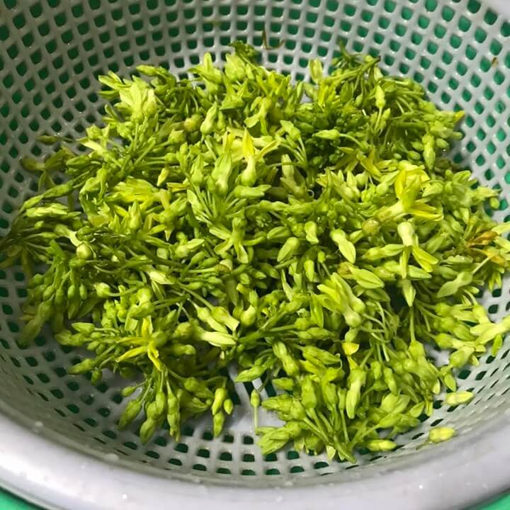 Bông thiên lý nhặt bỏ phần cuống cứng, rửa sạch, để ráo.