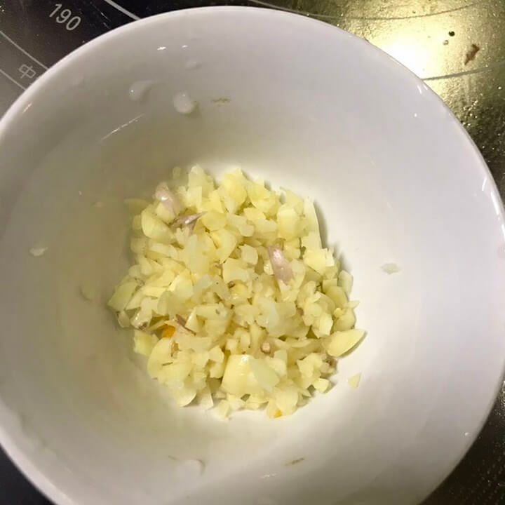 Tỏi bạn bóc sạch vỏ, băm nhuyễn cho ra chén.