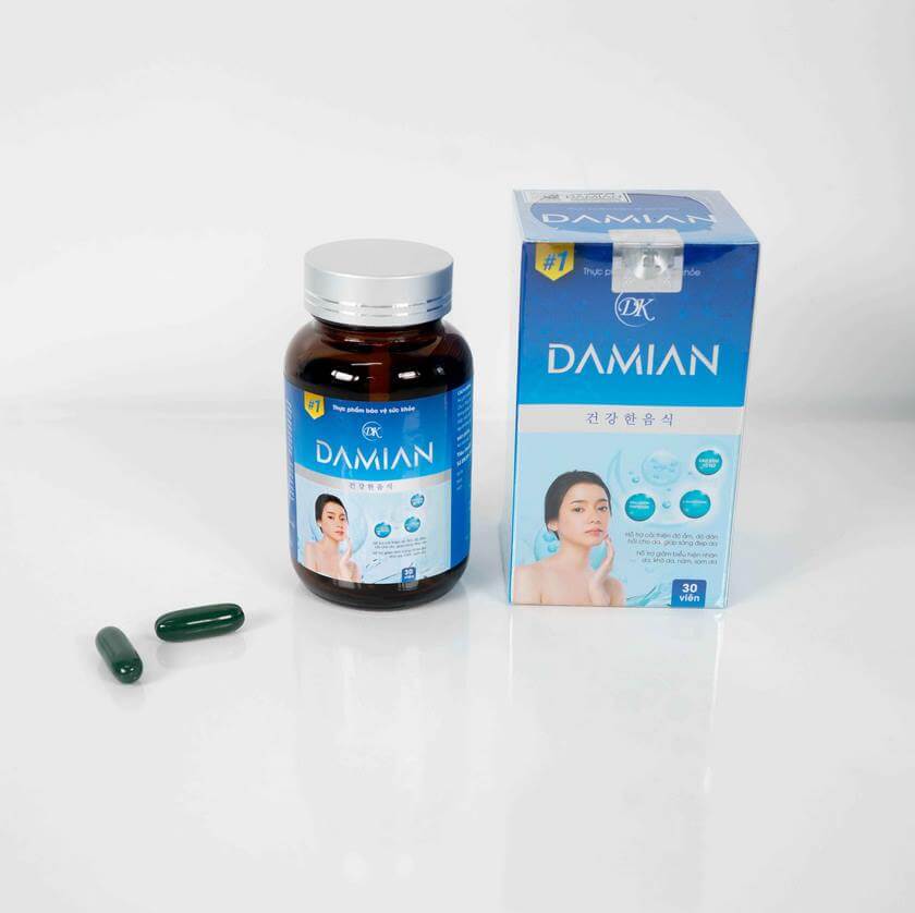 Viên uống trắng da Damian Dakami là thực phẩm hỗ trợ làm đẹp có tác dụng làm trắng da và cải thiện các vấn đề như: nhăn da, khô da, nám và sạm da. Sản phẩm Damian được nghiên cứu dành riêng cho làn da của phụ nữ Châu Á, đặc biệt là phụ nữ Việt Nam.